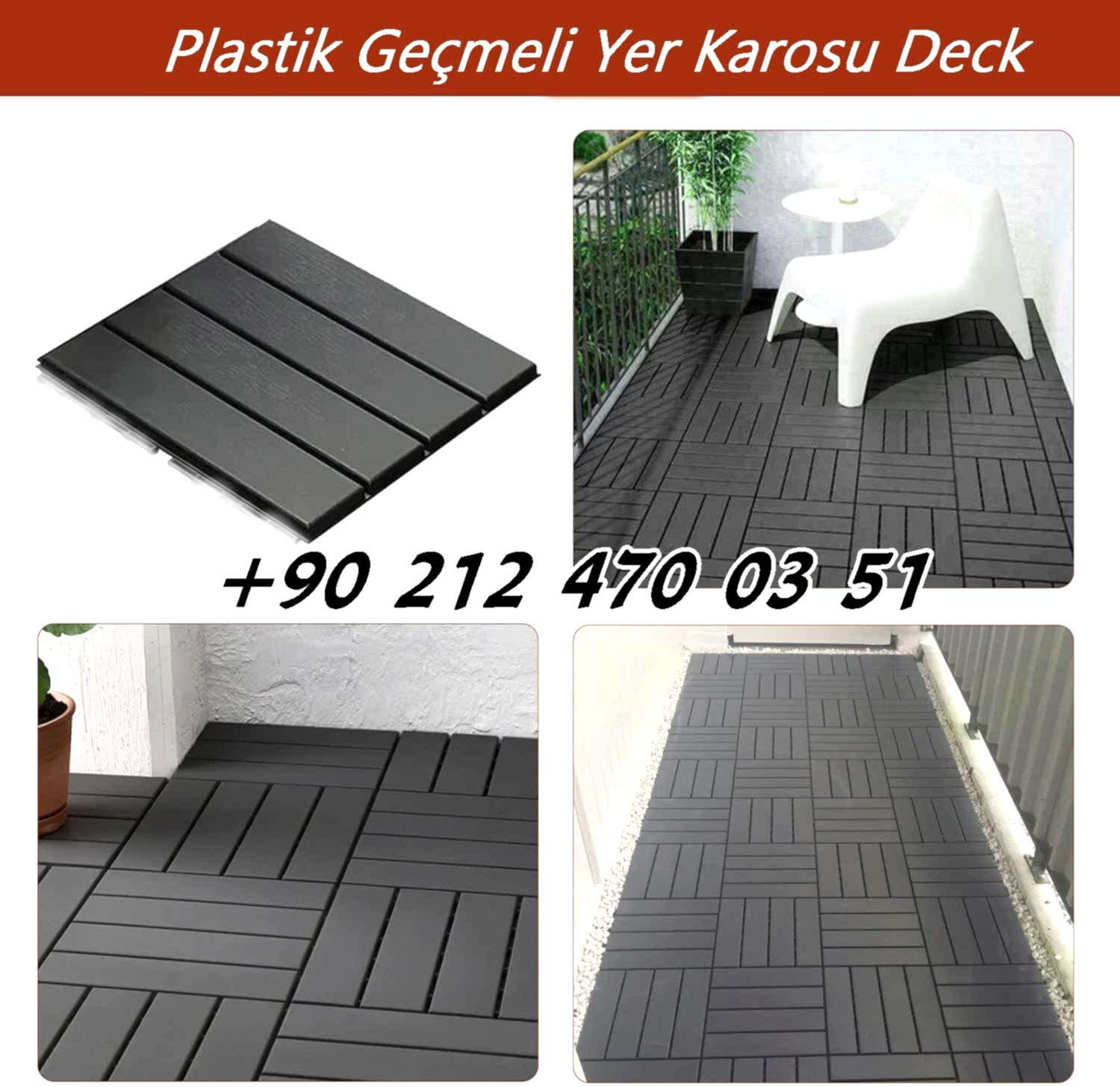 Plastik Deck 30x30 Balkon Bahçe Teras Havuz kenarı yer döş...